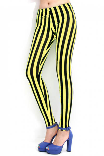 Vivid Color Striped Leggings Yellow and Black L9689-2