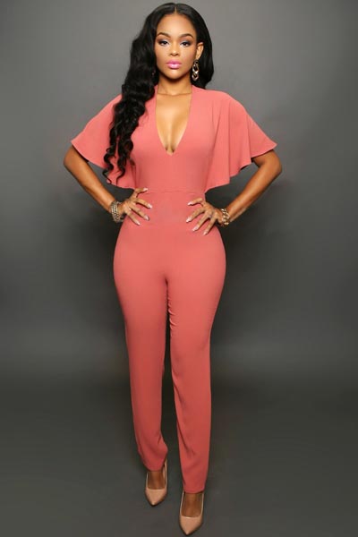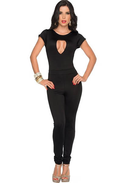 Front Diamond Accessories Black Club Jumpsuit L5004-1