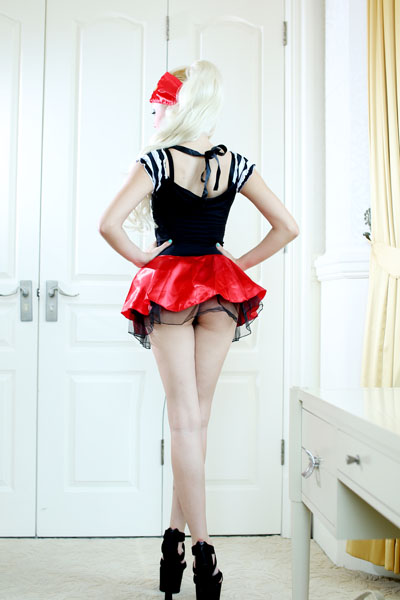 Show off your treasure chest this Halloween in this Secretly Seductive Treasure Pirate costume featuring a peasant-style mini dress with halter inspired tie back neckline, gathered ruffle edged bust with attached puff sleeves, corset inspired front lacing, pleated ruffle bottom with mesh underlay and matching scarf headpiece. (Thigh high stockings sold separately.)