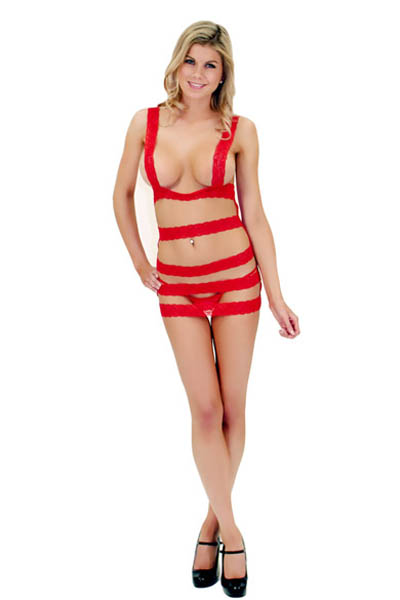 Strappy Lace Babydoll L2430-2,This sexy babydoll will keep them asking for more with a see-through black mesh back and open, strappy lace front. Thong included.