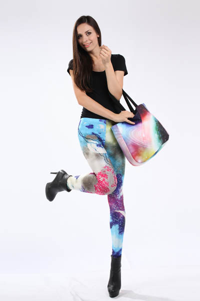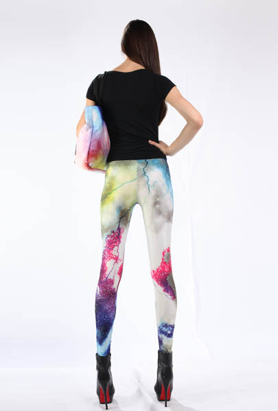 Multicolored Fancy Galaxy Leggings , stretch panel at the waist. These leggings are crafted from a stretch, jersey fabric with a soft hand feel and cut with a bodycon fit. Perfect paired with an oversized tee and combat boots for a more casual look!