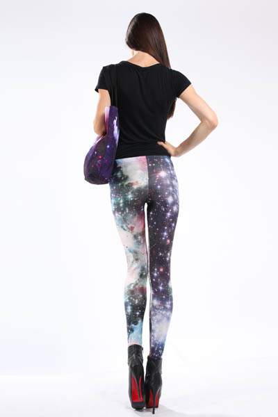 Multicolored Fancy Galaxy Leggings , stretch panel at the waist. These leggings are crafted from a stretch, jersey fabric with a soft hand feel and cut with a bodycon fit. Perfect paired with an oversized tee and combat boots for a more casual look!