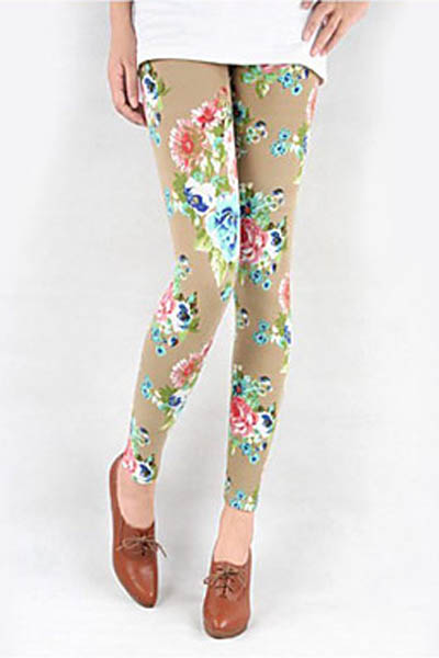 Coffee Peony Printed Leggings L9569-2