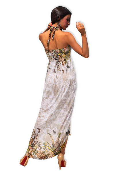 Gorgeous White Floral Print Halter Bandeau Boho L5058-1