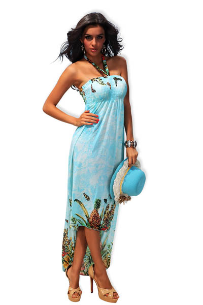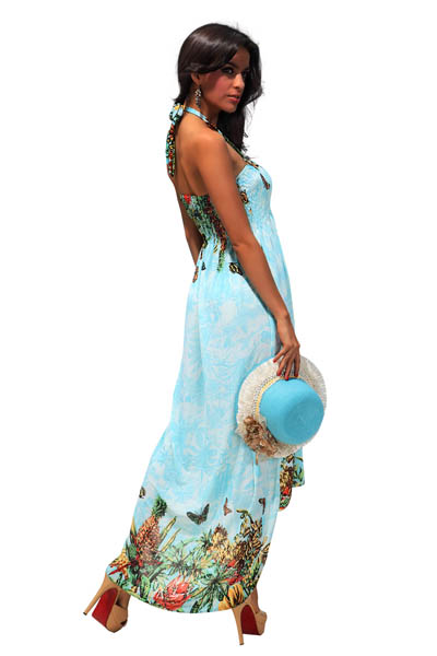 Gorgeous Light Blue Floral Print Halter Bandeau Boho L5058-3
