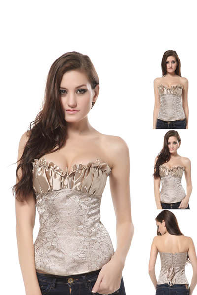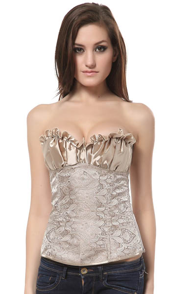 Plus size XXL,New Beige Boned Lace Up Back Bustier Corset Top L4081-1