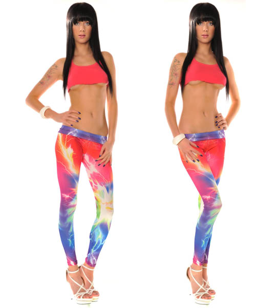 Ladies Sexy Colorful Lightning Print Stretchy Tight Digital printing Leggings L9551