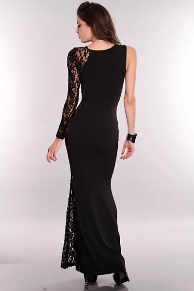 Black One Shoulder Lace Long Sleeve Dress L5007-2