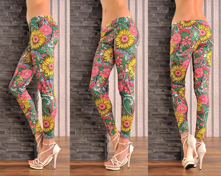 Fashion Goth Rock Garter Buckle Black Cross Print Stretchy Tights Pants L9555