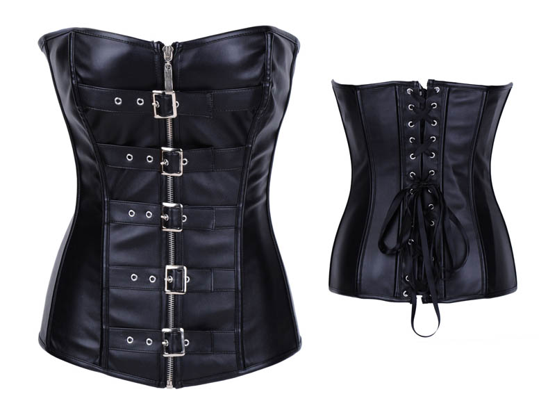 Front Zipper and Back Tie Sexy Leather Outfit Corset L6037