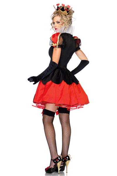 The Dazzling Dark Queen costume includes a gold scroll detail, layered mini dress with glitter heart accents, puff sleeves, mesh collar and matching crown head piece,Gloves.