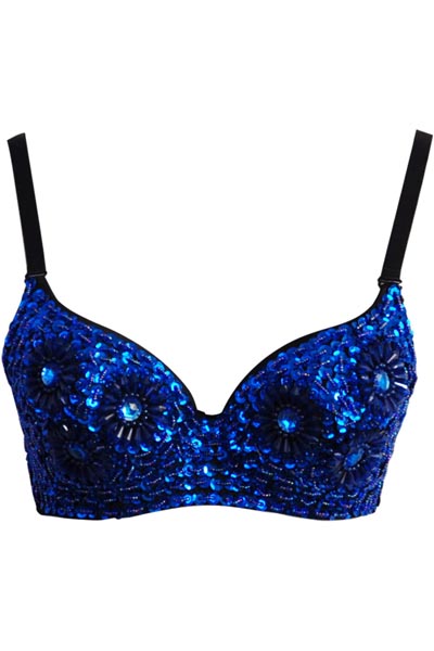 Floral Studded Bead and Sequin Bra Top Blue L3223-1