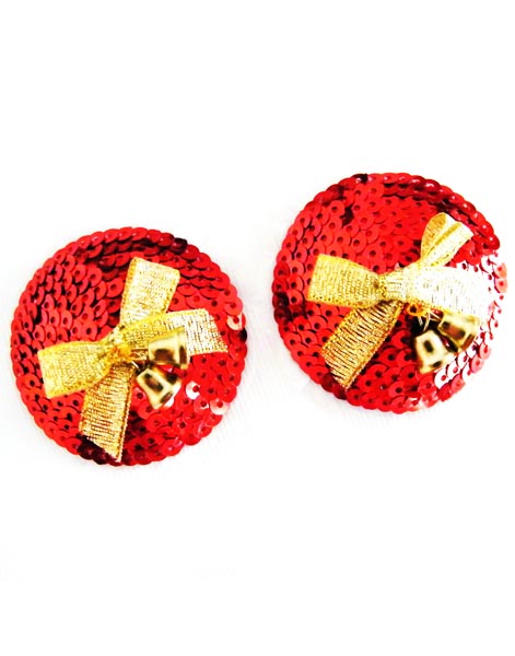 Circle Red Sequins With Bow Club Nipple Cover Pasties L9746