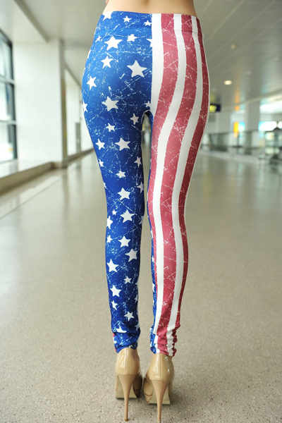 Casual Style Star Print Stripe Color Block Skinny Leggings For Women L9564