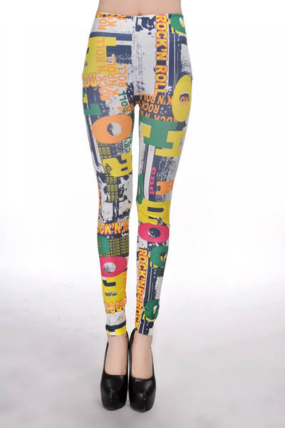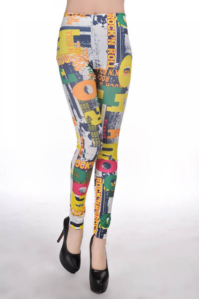 Color Stripes Alphabet Graffiti Seamless Leggings L9398