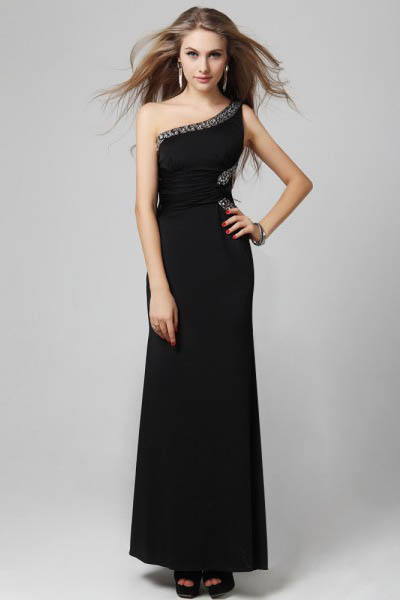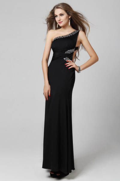 New Fashion Black Long One Shoulder High Waist Sexy Evening Dress Party Formal Dress L5082-1