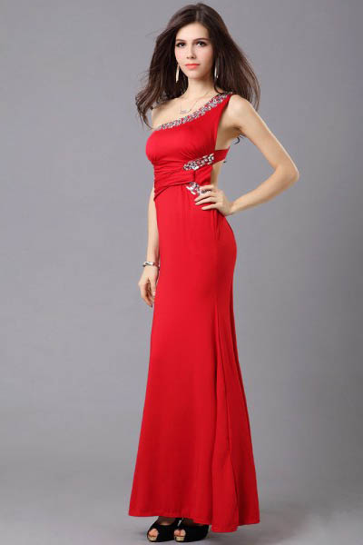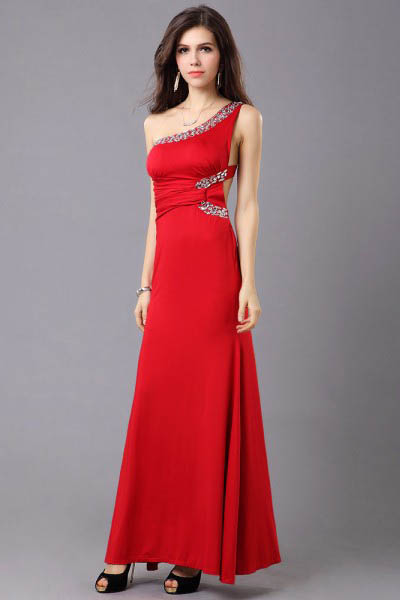 New Fashion Red Long One Shoulder High Waist Sexy Evening Dress Party Formal Dress L5082-2