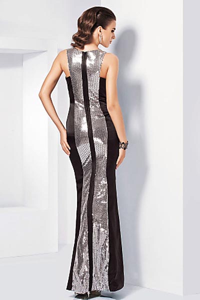 Floor-length Stretch Satin Sequined Evening Dress L5083