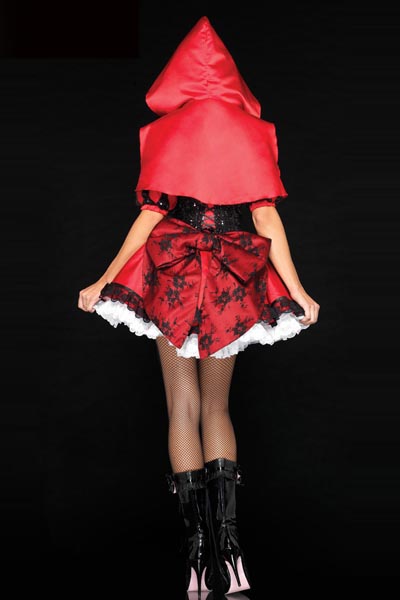 Deluxe Luxurious Red Riding Hood Costume L1490,comes with Corset Dress,Arm puffs,Hooded cape, Lace back bow.