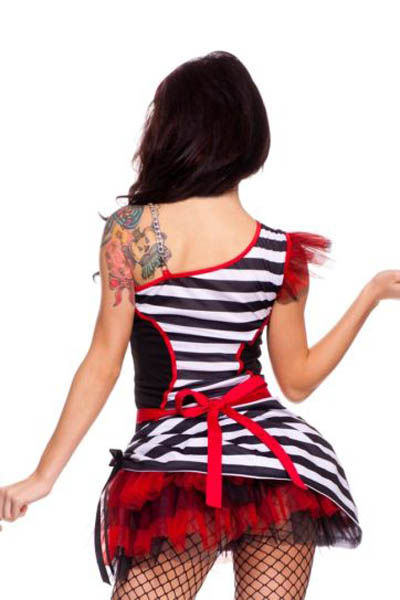This Item Includes: Dress with attached petticoat, Hat, Handcuff belt, & Handcuffs.