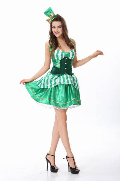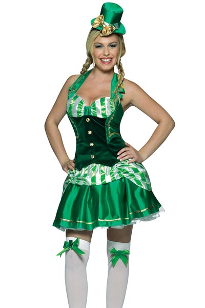 This sexy Shamrock Sweetheart costume is the perfect outfit for St. Patrick's Day. This set includes the skirt, the headband with the attached hat .Not including the stockings.