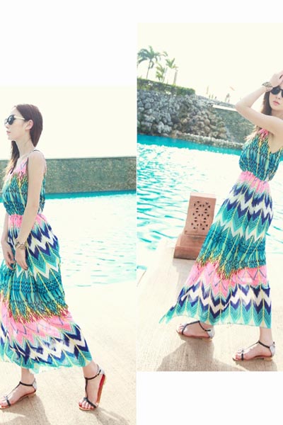 Ladies delicate lace stitching Slim waist dress sleeveless chiffon halter dress L51148