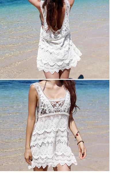 Sexy Lace Crochet Bikini Swimwear Cover Up Beach Dress L3785
