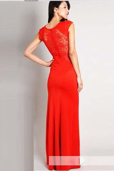 Red Lace See Through Long Evening Dress L5087-2