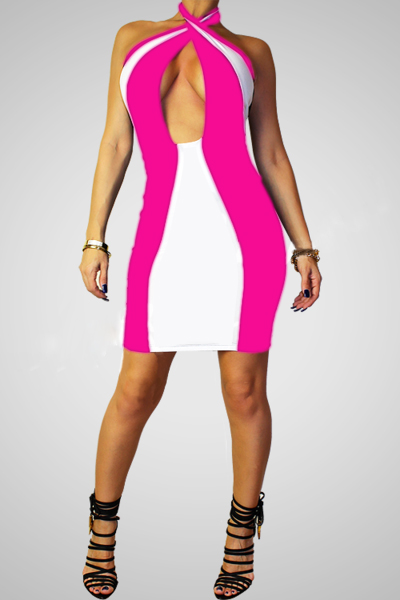 Pink /White Low V Cut Bare Back Bodysuit L2751-3