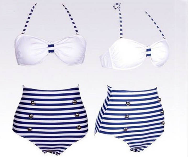 Blue Stripe Halter Top Pin up Bikini Swimwear L3246-2