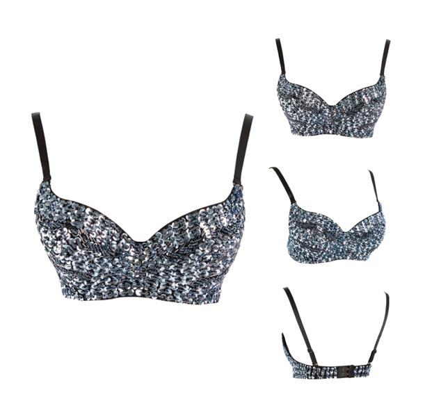 Floral Studded Bead and Sequin Bra Top Blue L3223-1