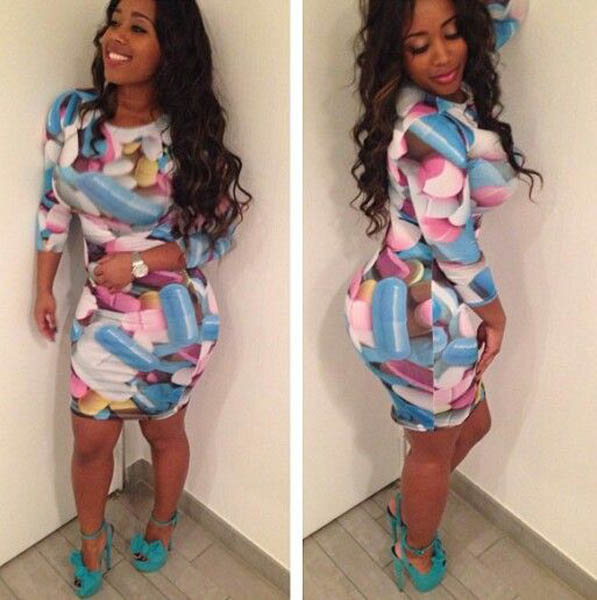 Formfitting Slashed Front Long Sleeved Print Bodycon Dress L27634