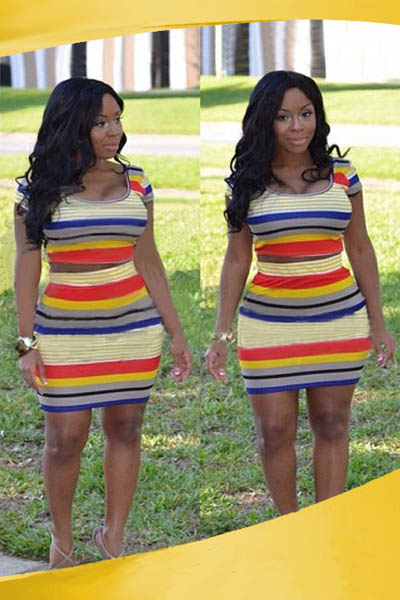 Yellow Geometric 2-in-1 Round Neck Vintage Maxi Dress L28085