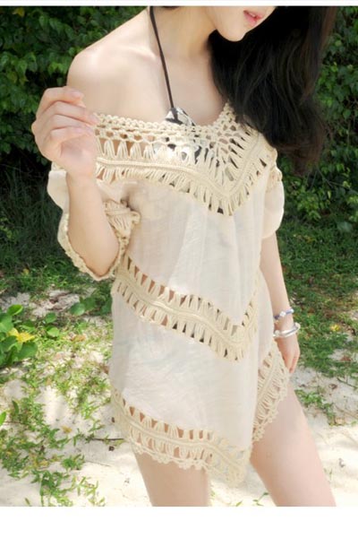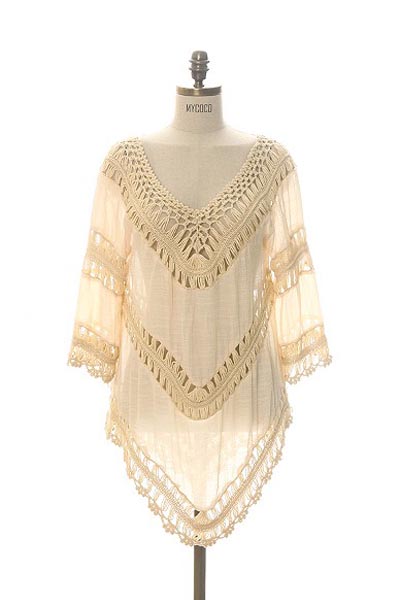 V-Neck Crochet Trim Tunic L38190