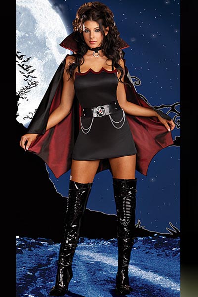 Sexy Evil Queen Sorceress Complete Halloween Costume L1294,Dress with flared collar and attached sleeve veils.