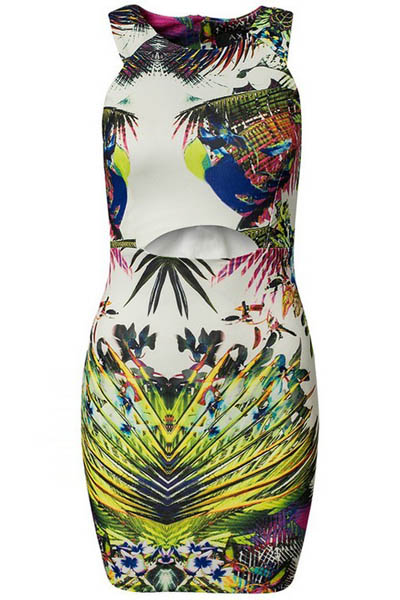Sexy Summer Patterns Flower Print Cut Out Detail Shift Mini Party Dress L27667