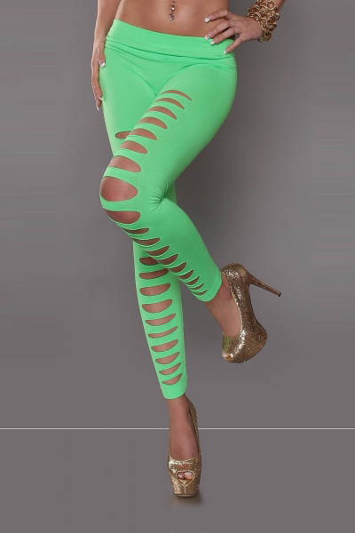 Women Fashion Solid Color Green Cut Out Punk Leggings L9639-3