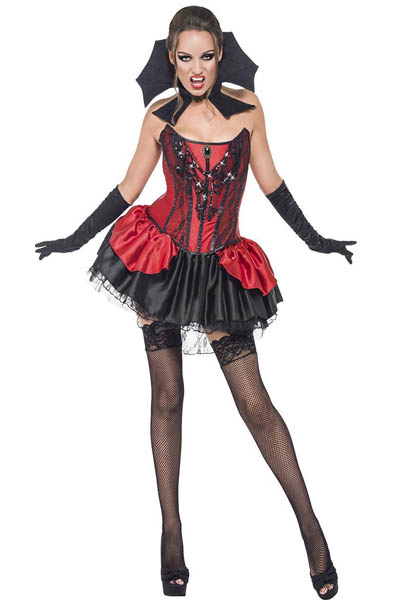 Fever Seductive Vamp CostumeL15137,Size M,L.Includes :Corset, Skirt and Collar ,Gloves .Stockings not Included .