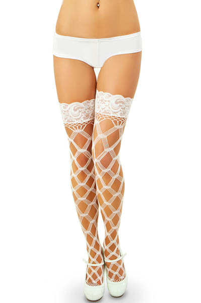 Seamless, diamond cut out thigh high stockings.