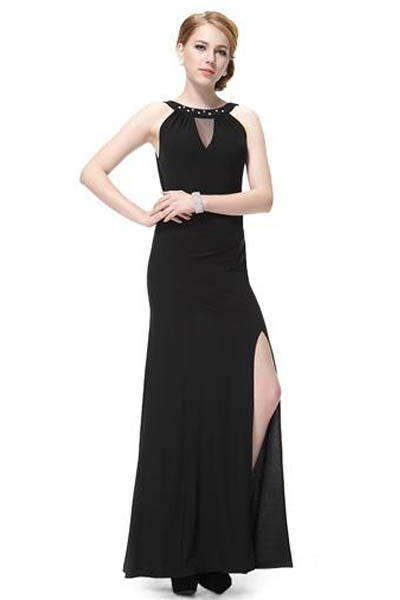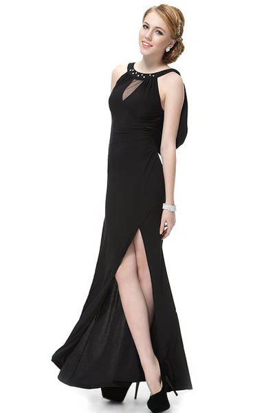 Unique Black Rhinestones Slitted Women Long Party Dress L51157-1