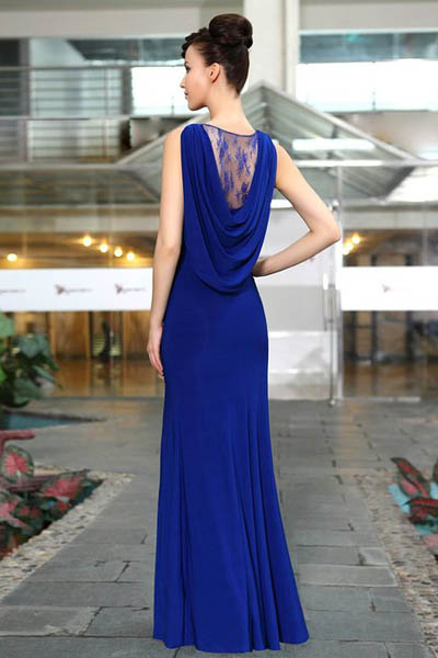 Unique Blue Rhinestones Slitted Women Long Party Dress L51157-2 Not padded Nonremovable rhinestones decorate the neckline area Unique back design enhance the charm of this dress No lining, low stretch