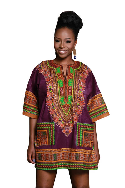 Women Traditional African Print Dashiki Shirt Dress L28068-1