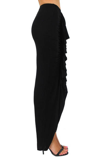 New Womens Fashion Style Ruffle Up Body Ruched Maxi Skirt Black L394-2