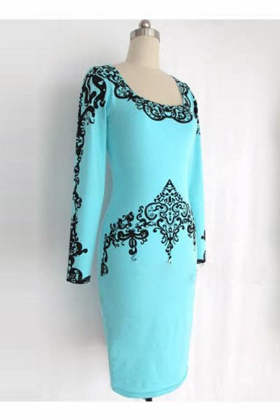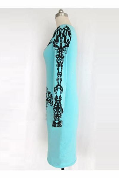 | Black Flower Printing Tunic Business Casual Party Pencil Sheath Dress |