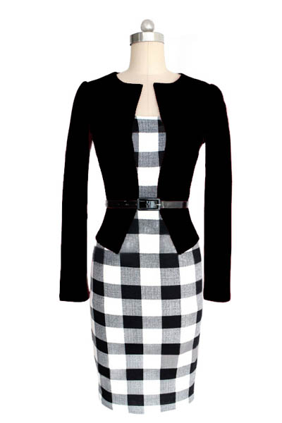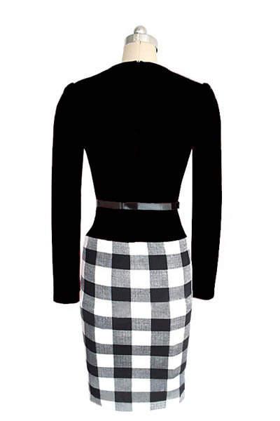 Womens Peplum Elegant Vintage Tartan Plaid Pencil Dress L36117-1