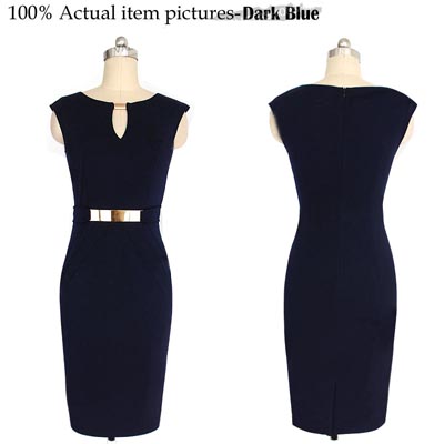 | Ladies Black Pencil Evening Slimming Panel Tea Dress |