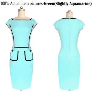 | Womens Retro O Neck Hip-wrapped OL Midi Dress |