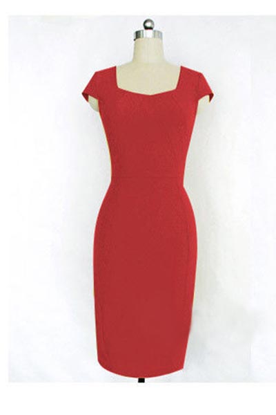 Women's Front Contrast Lace Pencil Dress L36124-2