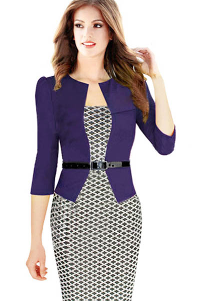 Elegant Fake 2 Piece Set Plaid Patchwork Belted Office Dresses L36057-1