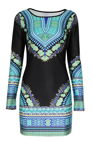 Sexy Women Long Sleeve Print Bandage Dress L27806